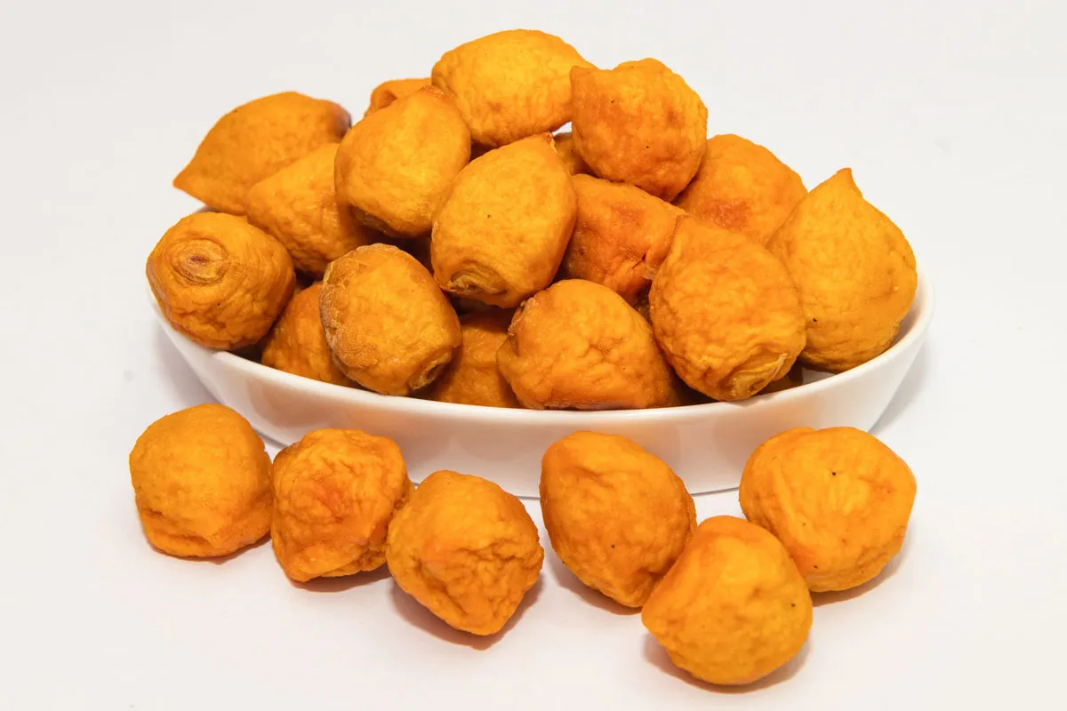 USO: Se puede consumir directamente como frutos secos tradicional, o remojados durante 18 horas y posteriormente cocidos por 30 minutos aproximadamente, para preparar el tradicional mote con huesillos.